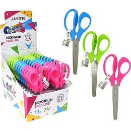 Ножницы детские "deVENTE. Cosmo Ergo Line" 13см с лезвиями из высококачественной нержавеющей стали с безопасными закругленными концами лезвий не ржавеют. Ручки эргономичной формы из ударопрочного пластика. Область применения таких ножниц достаточно широка: их можно использовать дома и в школе для разрезания любых видов бумаги и картона.