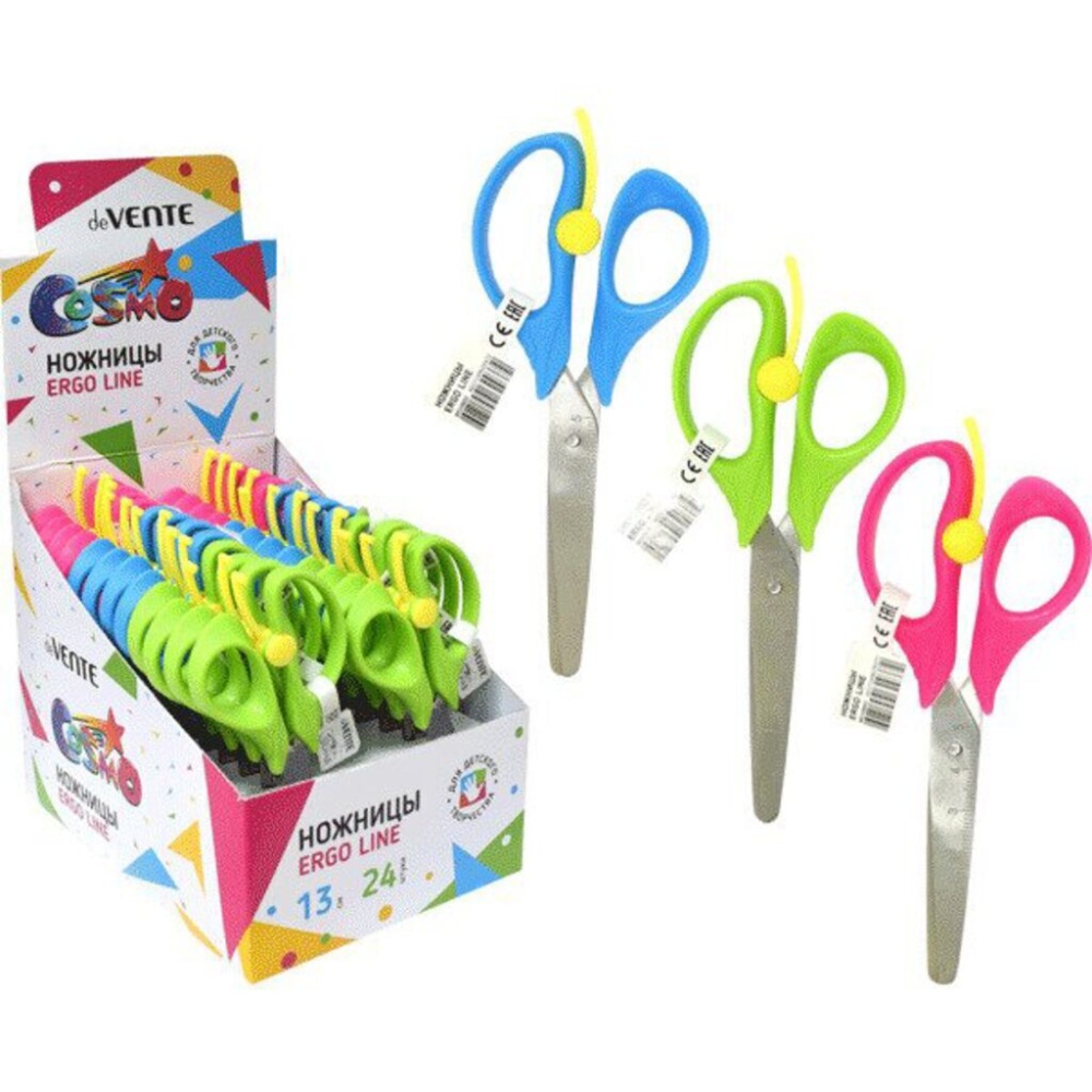 Ножницы детские "deVENTE. Cosmo Ergo Line" 13см с лезвиями из высококачественной нержавеющей стали с безопасными закругленными концами лезвий не ржавеют. Ручки эргономичной формы с упором из ударопрочного пластика. Область применения таких ножниц достаточно широка: их можно использовать дома и в школе для разрезания любых видов бумаги и картона.