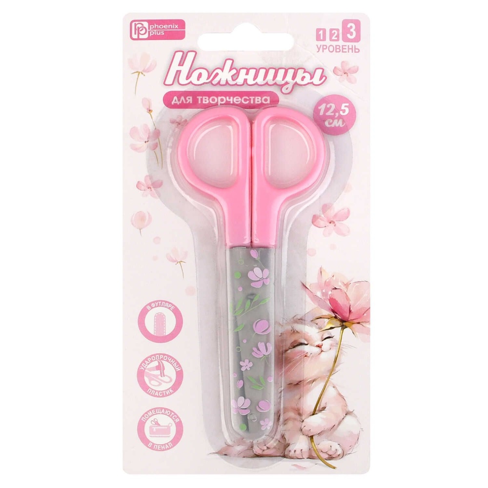 Ножницы детские Феникс+ "Кот с цветком" 12,5 cм, нерж.сталь