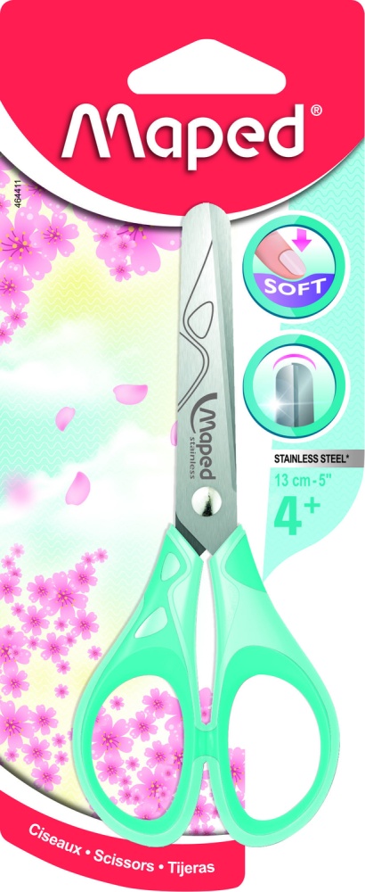 Ножницы детские MAPED "ESSENTIALS SOFT PASTEL" 13 cм, симметричные, прорезин. ручки, закругл. лезвия
