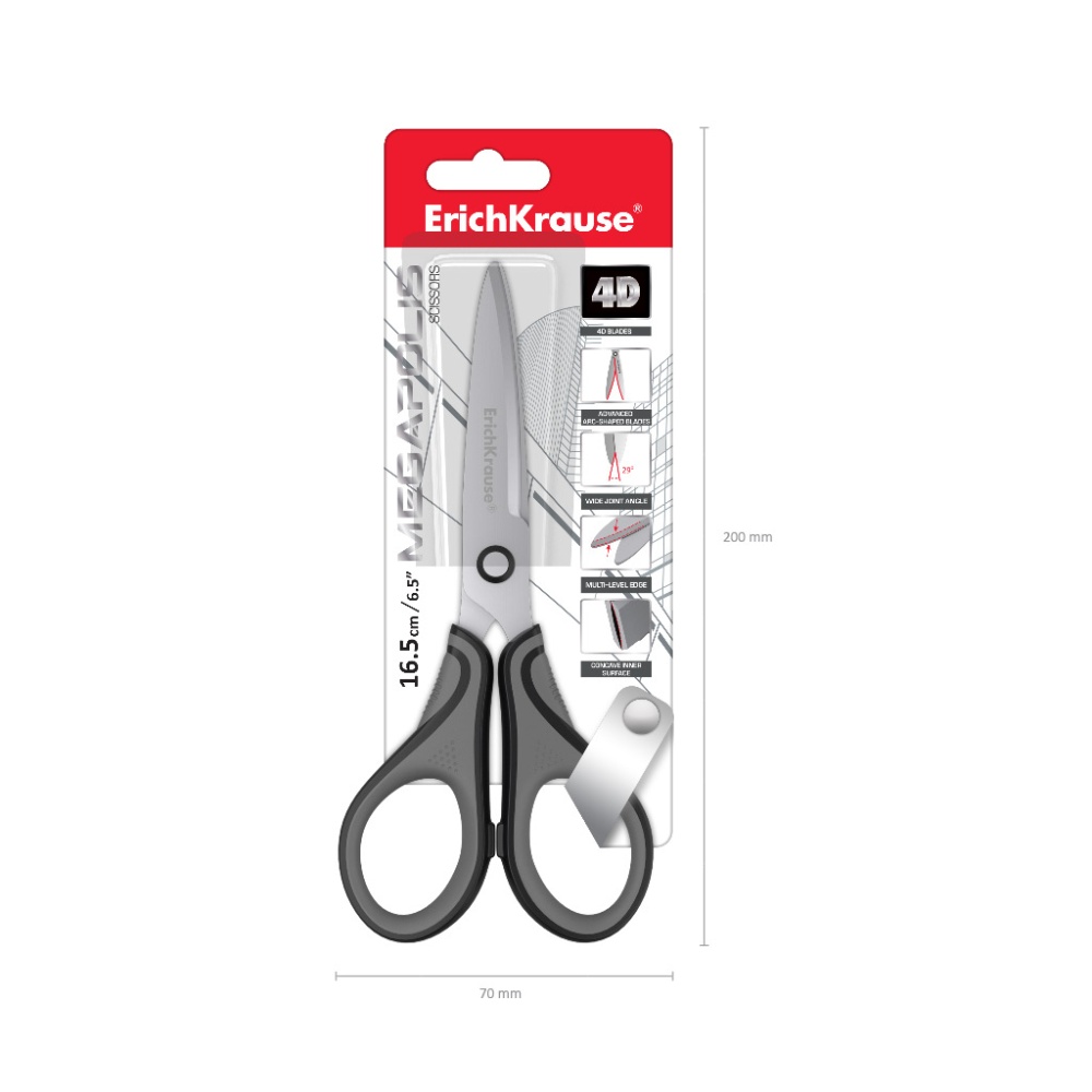 Ножницы ErichKrause Megapolis, 16.5см, серо-черный (в блистере 1 шт.)