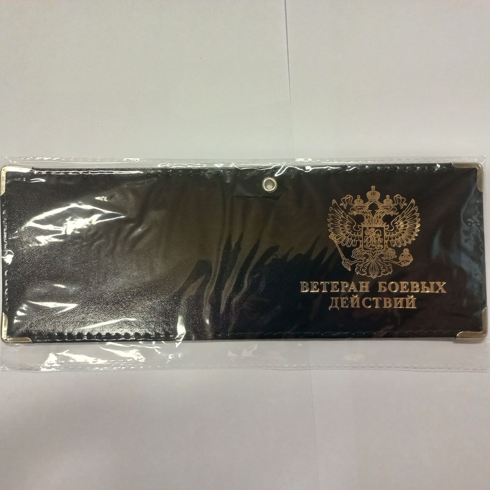 Обложка для удостоверения с надписью ВЕТЕРАН БОЕВЫХ ДЕЙСТВИЙ, нанесённой с применением высококачественной фольги. Изготовлена из натуральной кожи. Отличный подарок для военнослужащего.