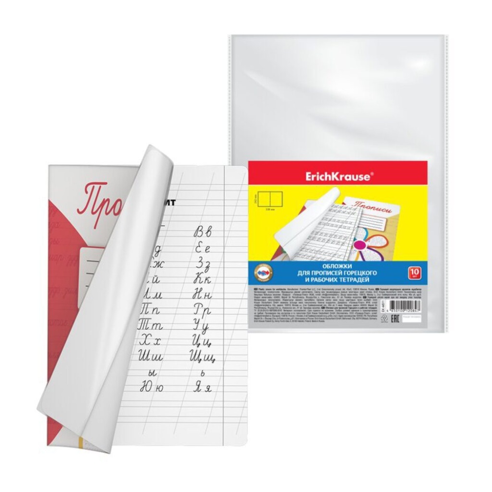 Обложка из высококачественного прозрачного пластика с особо прочными швами и текстурой поверхности "Orange peel", на которой не видно отпечатков пальцев и мелких царапин. Надежно защищает прописи и рабочие тетради от повреждений. Код и баркода на каждой единице товара.