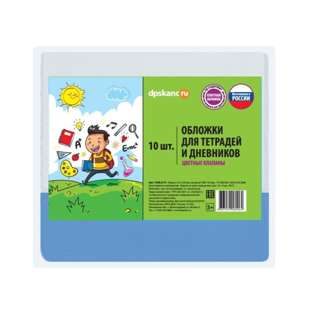 Набор обложек для тетрадей и дневн. (209*350) ПВХ 110мкм прозр., с цв.клапаном 10шт/уп
