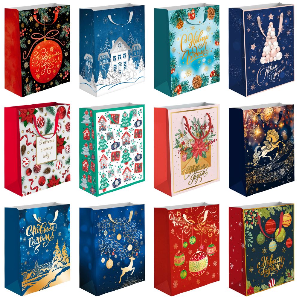 Пакет подар. бум. новогодн. 20*24*11,5 см 160 гр/м2 Новогоднее ассорти
