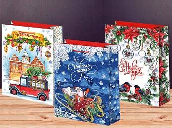 Новый год - волшебный праздник, основным атрибутом которого являются сюрпризы и подарки. Любой, даже самый небольшой подарок начинается с упаковки! Выберите подарочный пакет, подходящий по стилю и размеру к Вашему подарку. Удачно выбранные подарочные пакеты способны подчеркнуть значимость подарка, какие-то его особенности и, конечно же, покажут получателю, что вы не просто выполняете обязанность, а действительно хотите его порадовать и поэтому серьезно подошли к выбору подарочной упаковки. Наши подарочные пакеты с оригинальным и ярким новогодним дизайном отлично подойдут для упаковки детских подарков, а также для вручения сюрпризов и милых безделушек близким и родным людям, друзьям и коллегам по работе. Дарите подарки красиво!