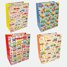 Пакет подар. бумажн. 18*23*10 см 210 гр/м2 Машинки, 4 дизайна