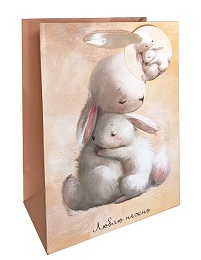 Пакет подар. бумажн. 18*23*10 см 210 гр/м2 Обнимашки. Зайчики, мат.лам