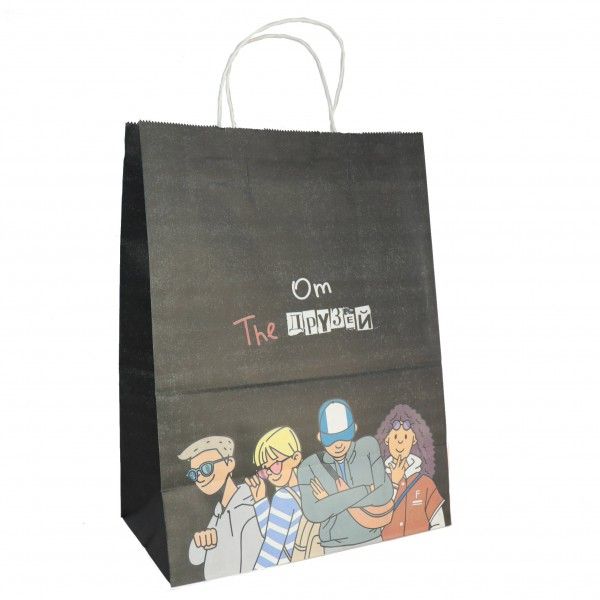 Пакет подар. бумажн. 25*22*12 см, 100 гр/м2 От друзей, крученые ручки