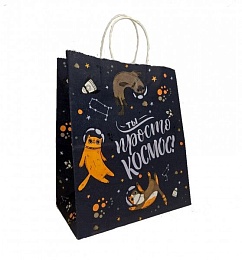Пакет подар. бумажн. 25*22*12 см, 100 гр/м2 Ты просто космос, крученые ручки