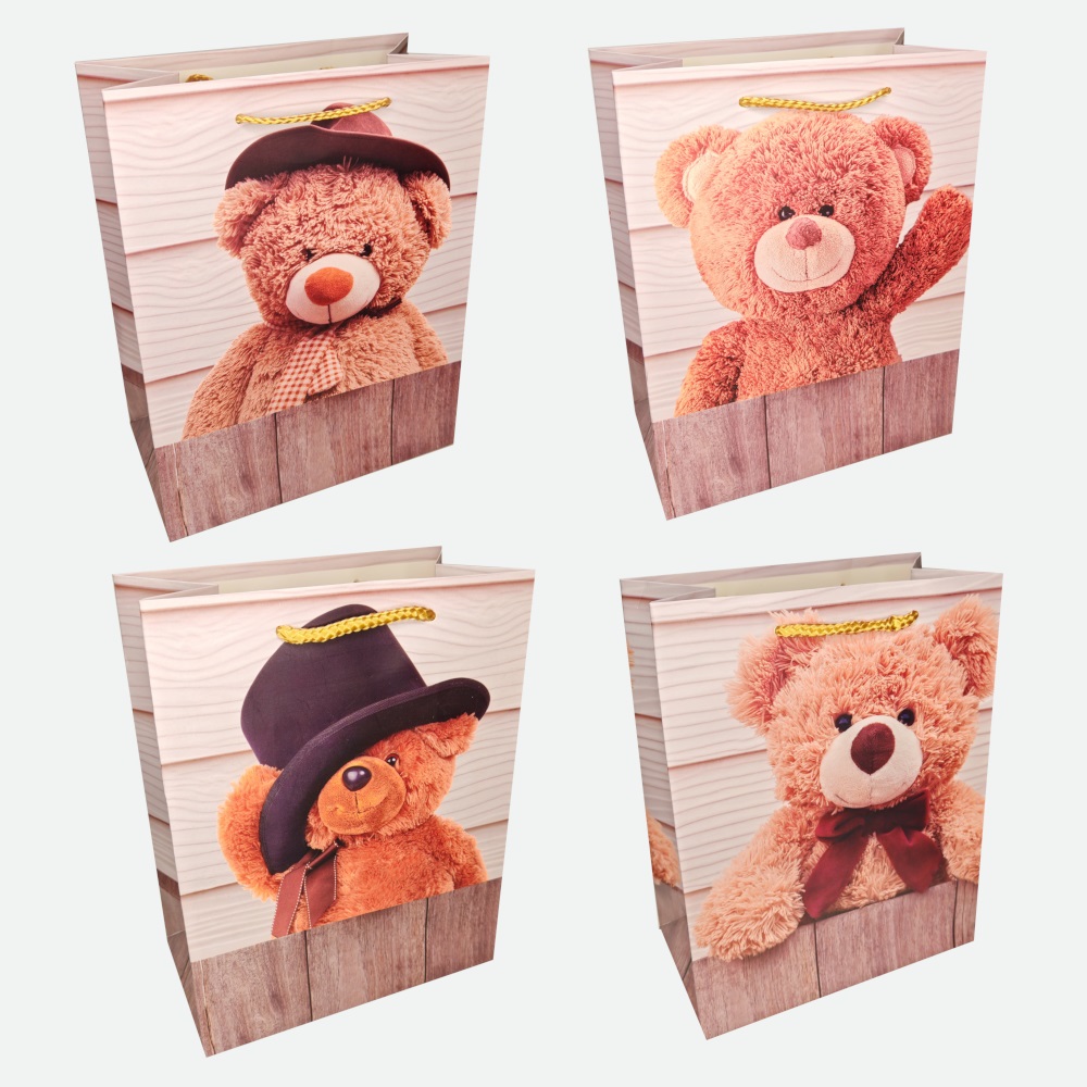 Пакет подар. бумажн. 31*42*12 см 210 гр/м2 Мишутка, 4 дизайна