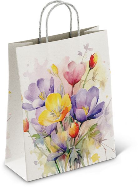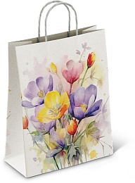 Пакет подар. бумажн. 35*26*15 см, 100 гр/м2 Крокусы, крученые ручки