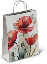 Пакет подар. бумажн. 35*26*15 см, 100 гр/м2 Маки, крученые ручки