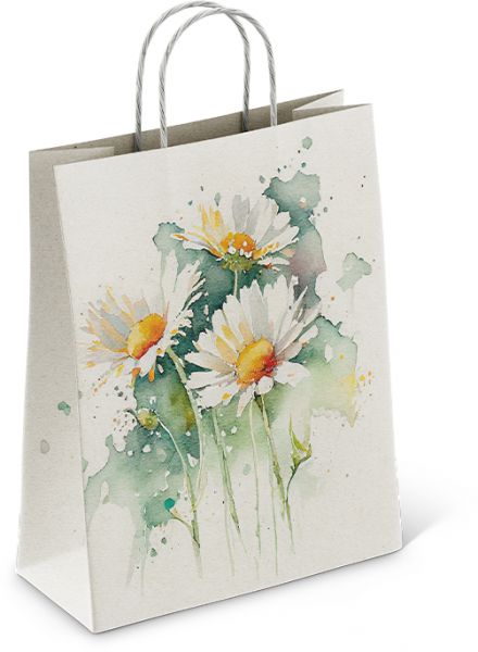 Пакет подар. бумажн. 35*26*15 см, 100 гр/м2 Ромашки, крученые ручки