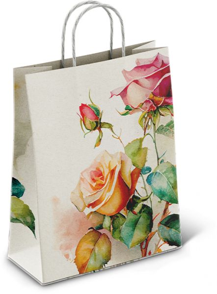 Пакет подар. бумажн. 35*26*15 см, 100 гр/м2 Розы, крученые ручки