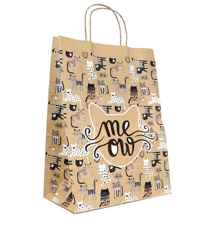 Пакет подар. бумажн. 35*26*15 см, 80 гр/м2 Мяу, крученые ручки