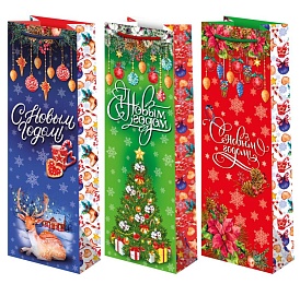 Пакет подар. бумажн. под бутылку 12*36*8 см, 157гр/м2 Микс новогодний 2
