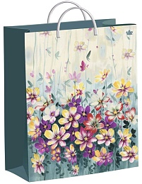 Пакет 40*30см (140мк) с пластиковой ручкой "Акварельные цветочки" мягкий пластик
