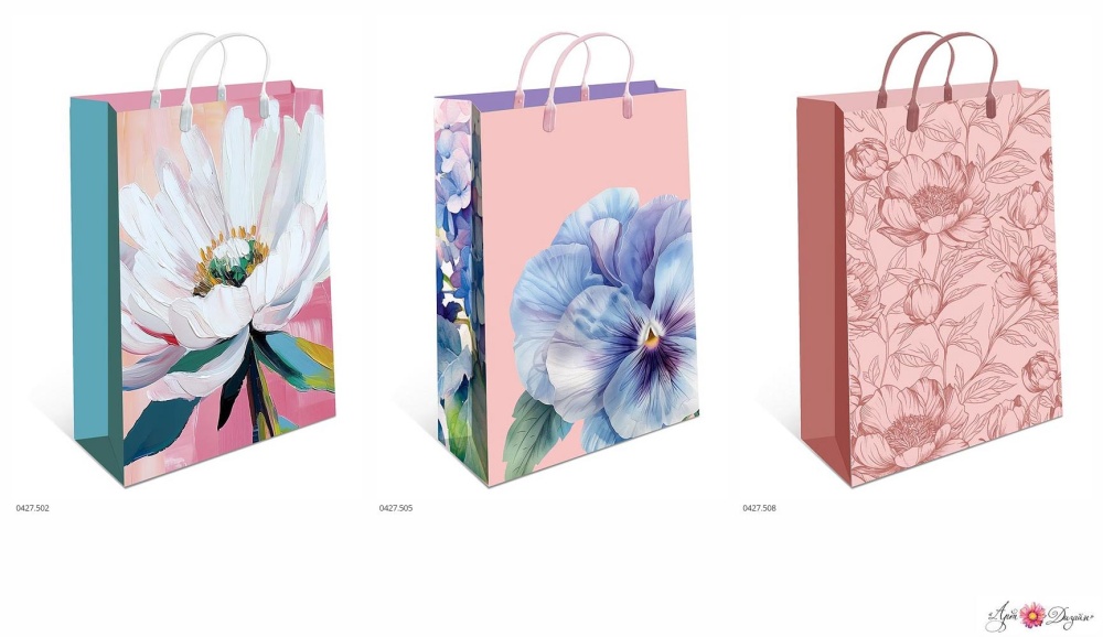 Пакет 40*30*10см "Цветы" с пласт. ручками, мягкий пластик