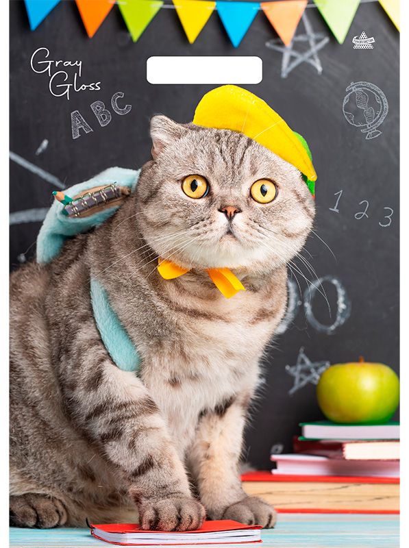 Пакет 43*31,5см (50мк) с вырубной ручкой "Грэй Глосс Кот" ПВД