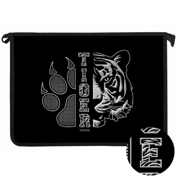 Папка д/тетрад. А4 (340*240*40) молния сверху, пластик, фольга "Свирепый тигр" диз. с двух сторон