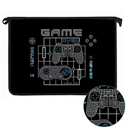 Папка д/тетрад. А4 (340*240*40) молния сверху, пластик, фольга "Время игры" диз. с двух сторон