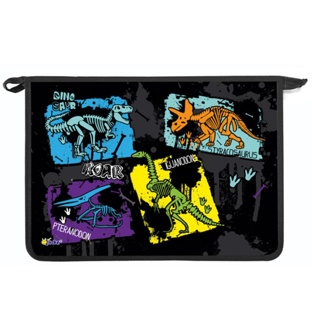 Папка д/тетрад. А4 (340*240*45) молния сверху, пластик "Скелет динозавра" диз. с двух сторон