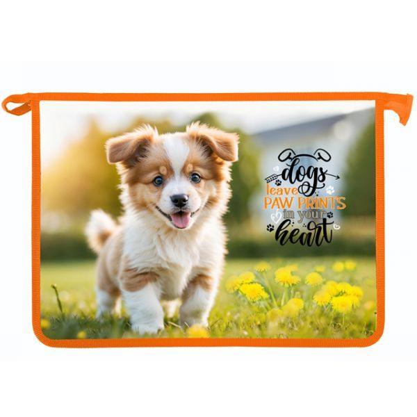 Папка д/тетрад. А4 (340*240*45) молния сверху, пластик "Забавный щенок" диз. с двух сторон