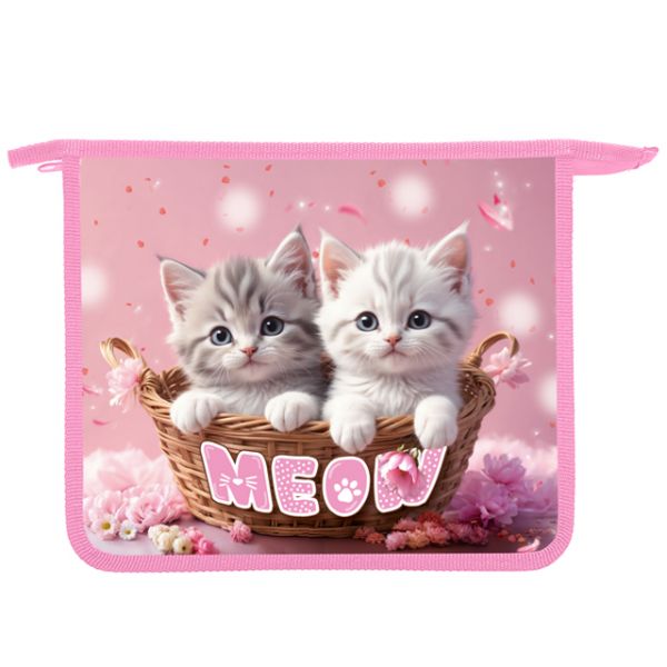 Папка д/тетрад. А5 (240*205*45) 1отд. молния сверху, пластик "Котики в корзине" диз. с двух сторон