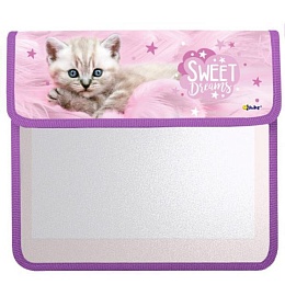 Папка д/тетрад. А5 (240*205*75) 2отд. на липучке, ламинат "Котёнок на розовом"