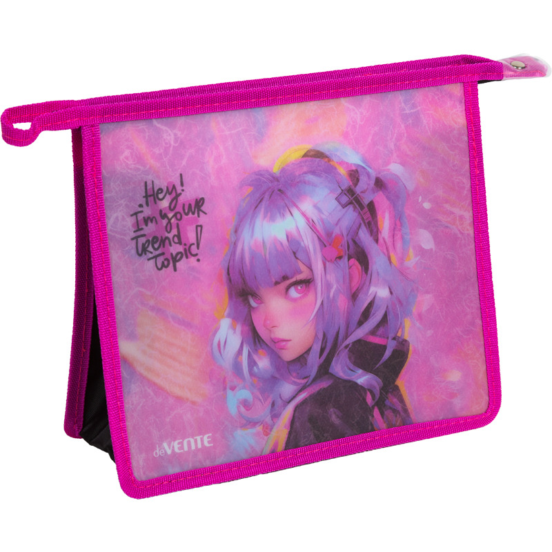Папка для тетрадей "deVENTE. Hey Girl" A5 (243x200x80 мм) с текстильным расширением 80 мм, на молнии сверху, 400 мкм, матовая полупрозрачная с рисунком, с волокнистой фактурой, индивидуальная упаковка