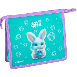 Папка для тетрадей "deVENTE. Little Rabbit" A5 (243x200x80 мм) с текстильным расширением 80 мм, на молнии сверху, 400 мкм, матовая полупрозрачная с рисунком, с искрящейся фактурой, индивидуальная упаковка