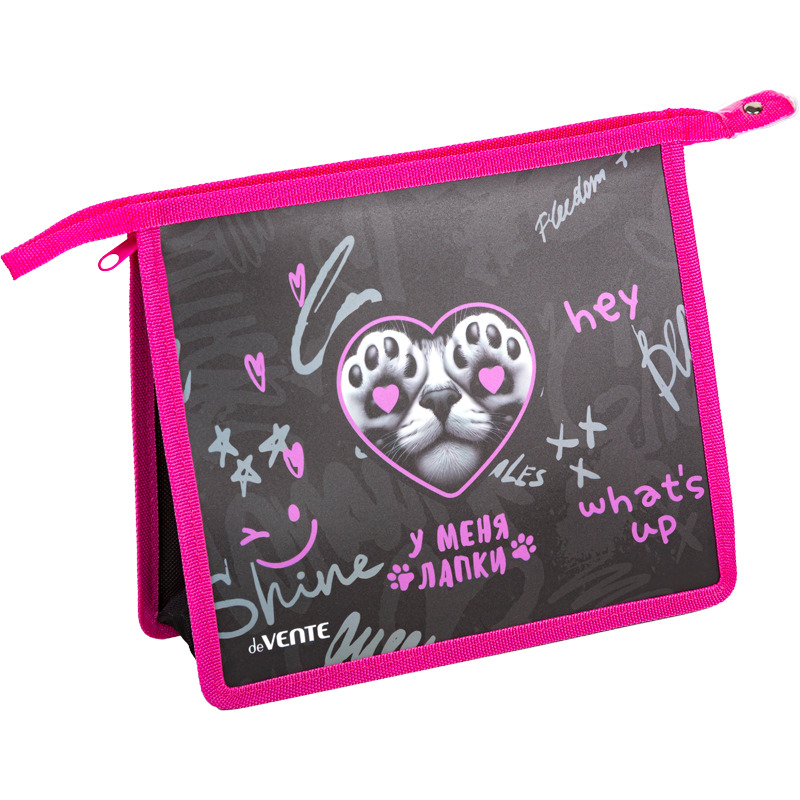 Папка для тетрадей "deVENTE. У меня лапки" A5 (243x200x80 мм) с текстильным расширением 80 мм, на молнии сверху, 400 мкм, непрозрачная с рисунком, фактура песок, индивидуальная упаковка