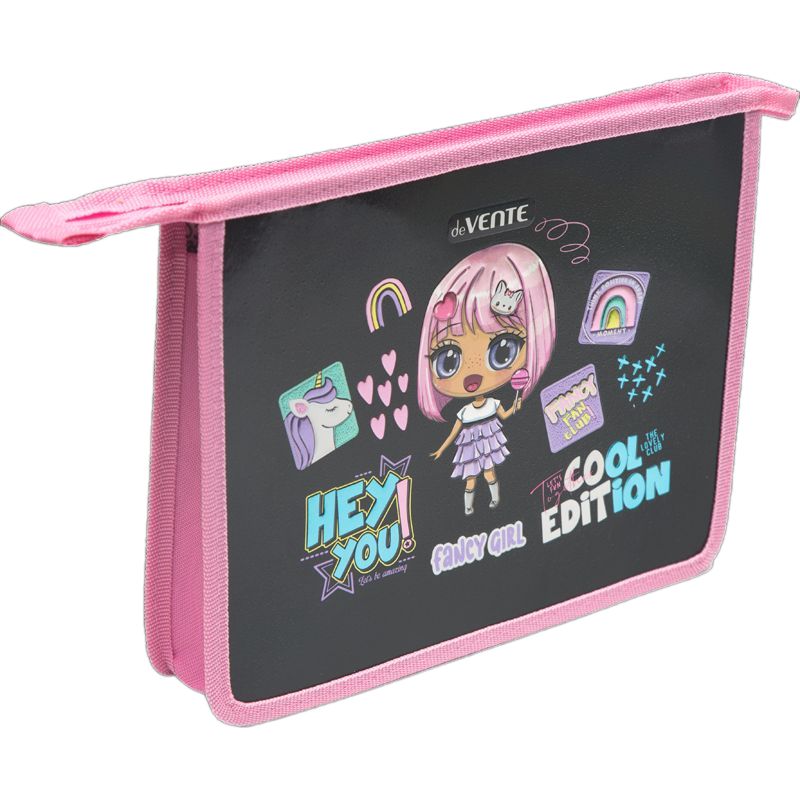 Папка для тетрадей "deVENTE. Fancy Girl" A5 (24x19,8x4,5 см) с текстильным расширением 4,5 см, на молнии сверху, картон с покрытием из фольги с конгревным тиснением