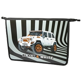 Папка д/труда А4 (335*240*85) 2отд. молния сверху, пластик/ламинат "Бело-черный джип"