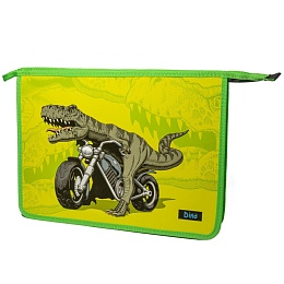 Папка д/труда А4 (335*240*85) 2отд. молния сверху, пластик/ламинат "Динозавр байкер"