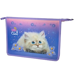 Папка д/ труда А4 (335*240*85) 2отд. молния сверху, пластик/ламинат "Игривый котенок" блестки