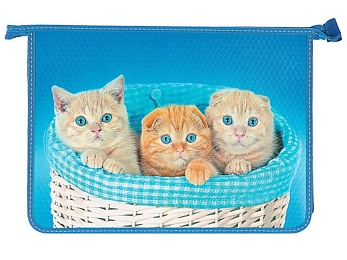 Папка д/труда А4 (335*240*85) 2отд. молния сверху, пластик/ламинат "Котята в корзинке"