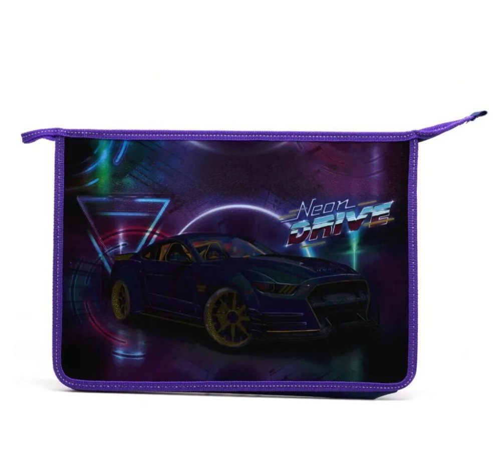 Папка д/труда А4 (335*240*85) 2отд. молния сверху, пластик/ламинат "Неоновый драйв"