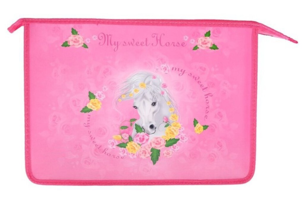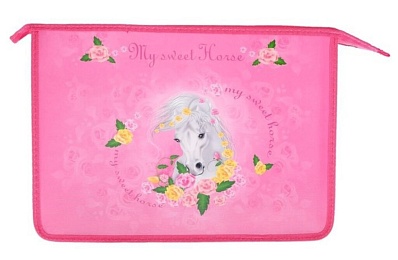 Папка д/труда А4 (335*240*85) 2отд. молния сверху, пластик/ламинат "Прелестная лошадка"