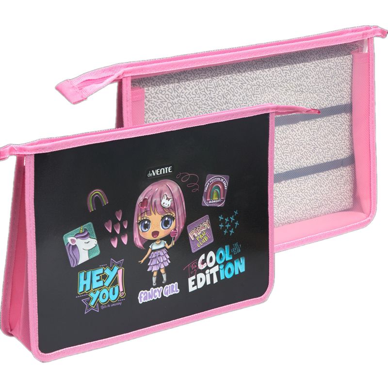 Папка для тетрадей, ИЗО и технологии "deVENTE. Fancy Girl" A4 (33,7x24,3x8 см) с текстильным расширением 8 см, на молнии сверху, картон с покрытием из фольги с конгревным тиснением, пластик 500 мкм