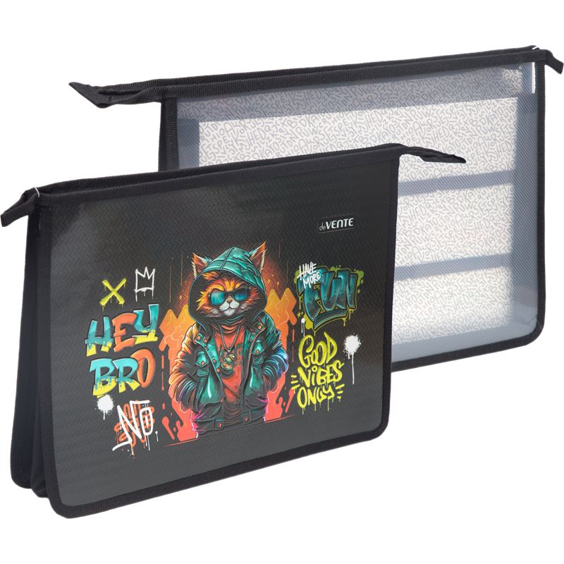 Папка для тетрадей, ИЗО и технологии "deVENTE. Hey Bro" A4 (33,7x24,3x8 см) с текстильным расширением 8 см, на молнии сверху, картон с конгревным тиснением, пластик 500 мкм