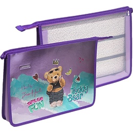 Папка для тетрадей, ИЗО и технологии "deVENTE. Teddy Bear" A4 (33,7x24,3x8 см) с текстильным расширением 8 см, на молнии сверху, картон с покрытием из фольги с конгревным тиснением, пластик 500 мкм