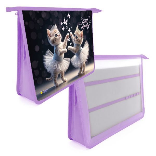 Папка д/труда А4 (340*245*75) 2отд. молния сверху, пластик "Cat ballet"