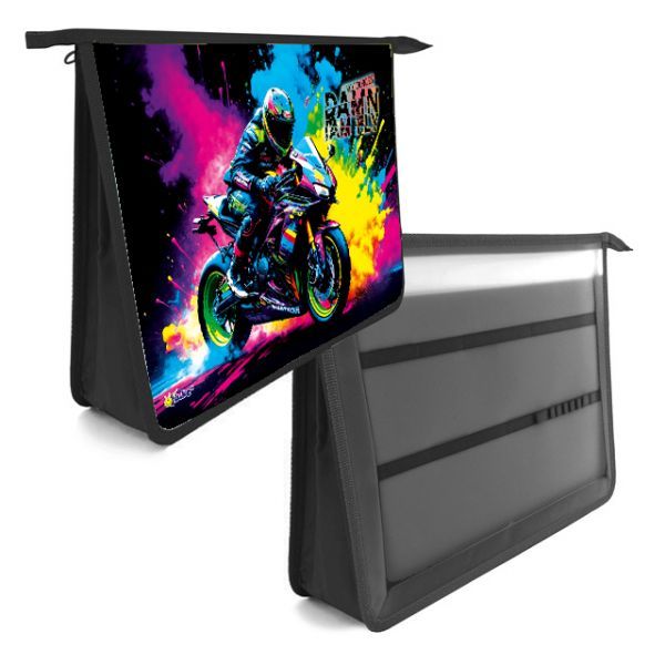 Папка д/труда А4 (340*245*75) 2отд. молния сверху, пластик "Мотогонщик"