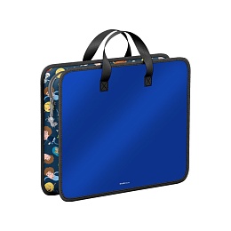 Папка для творчества формата A4+ из высококачественного пластика с элементами 100% полиэстера. Предназначена для переноски изделий и аксессуаров для творчества. Имеет одно большое отделение с расширением из ткани. Закрывается на молнию с мягким ходом. Для комфортной переноски ручки папки выполнены из прочной стропы. Цвет папки - синий, цвет текстильной вставки - паттерн. Размер - 333х268х90мм. Толщина пластика - 0.6мм.