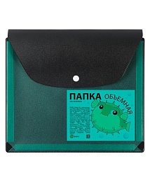 Конверт на кнопке 228*188мм, ПВХ, расширение до 2,5см (250 л),черный/пр.зеленый