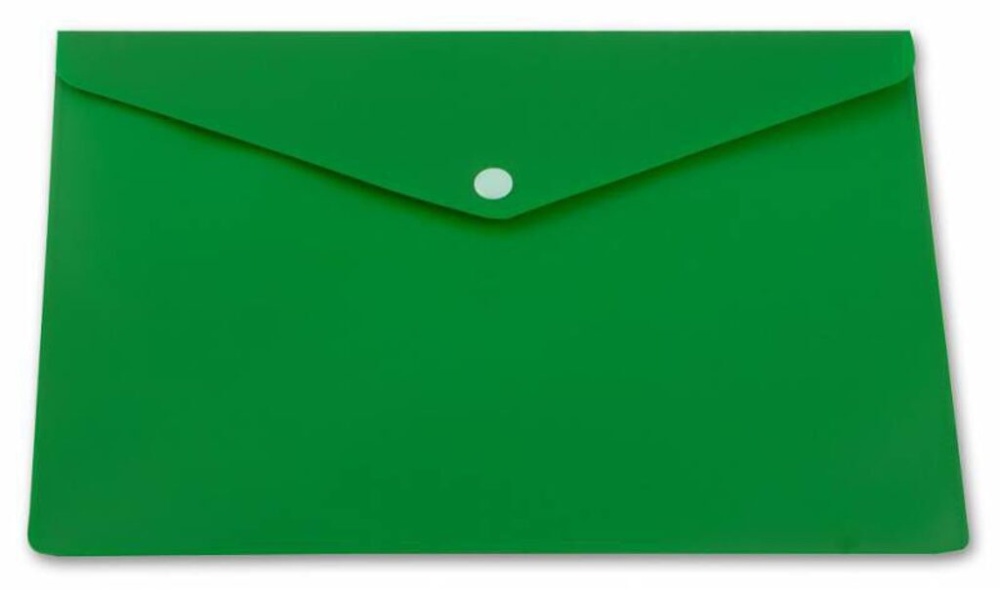 Конверт на кнопке А4 0,18мм непрозр., глянц. однотонный, зелёный