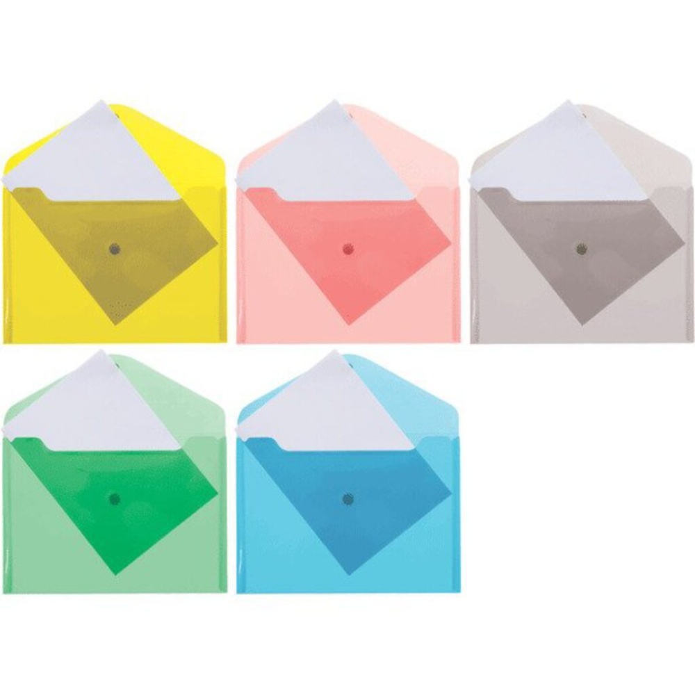 Конверт на кнопке А5+ (190*240 мм) 0,18мм полупрозрачный ассорти (полупр., красн, син., зел., желт.)
