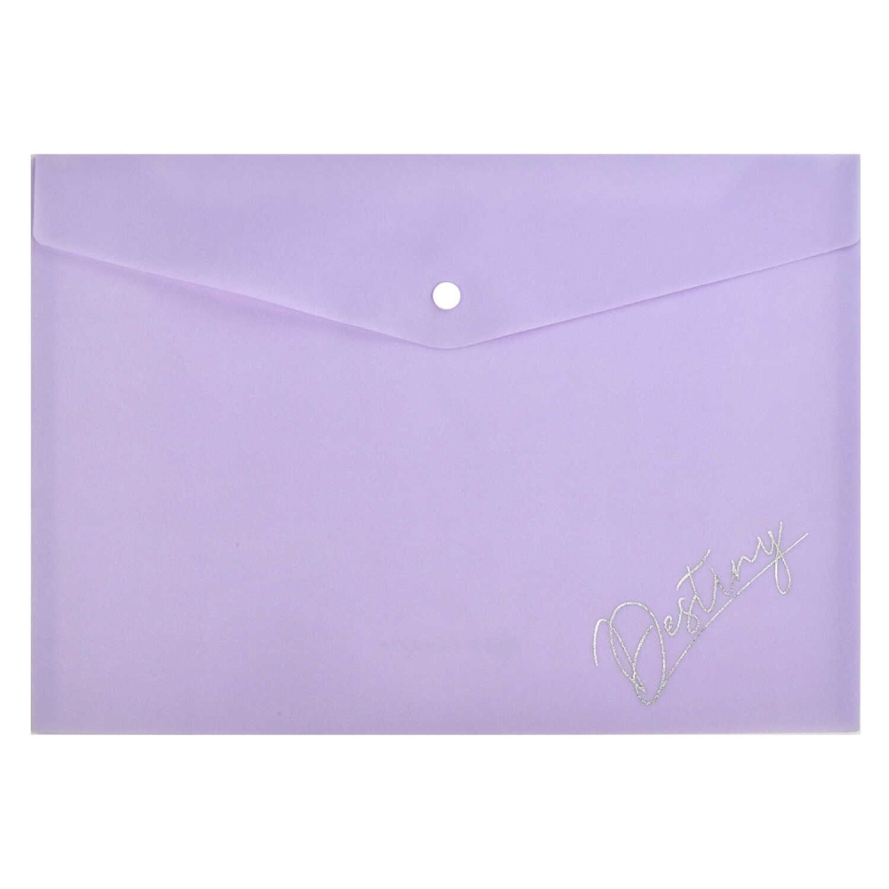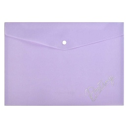 Полупрозрачная пластиковая папка на кнопке "Пастельный сиреневый глиттер" формата А4 для хранения, транспортировки тетрадей, канцелярских принадлежностей, разного типа документов. Папка изготовлена из гибкого и прочного полимерного материала , который не царапается и хорошо сохраняет содержимые документы от механических повреждений. Папка для документов пластиковая арт. 65868/ 12 ПАСТЕЛЬНЫЙ СИРЕНЕВЫЙ ГЛИТТЕР (полипропилен, формат А4, 33x23.5 см, одно отделение (-я), кнопка, глиттер, печать фольгой)